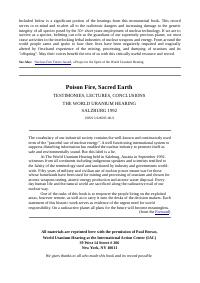 enthält: -Downloads von https://ratical.org/radiation/WorldUraniumHearing/): Ablauf des Hearings, Table of Contents (des dazu herausgegebenen Buches "Poison Fire, Sacred Earth"), Declaration of Salzburg (Salzburger Erklärung), Eröffnungsrede Claus Biegert [Digitalisate vorhanden]