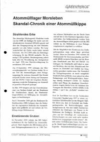 Titel/Autor: Atommülllager Morsleben : Skandal-Chronik einer Atommüllkippe / Greenpeace, November 2000