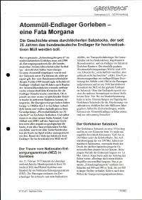 Titel/Autor: Atommüll-Endlager Gorleben - eine Fata Morgana : Die Geschichte eines durchlöcherten Salzstocks, der seit 25 Jahren das bundesdeutsche Endlager für hochradioaktiven Müll werden soll / Greenpeace, November 2002