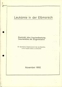enthält: -Bericht: Untersuchungsprogramm Leukämie in der Samtgemeinde Elbmarsch : Fragestellungen, Ergebnisse, Beurteilungen. Gemeinsamer Abschlussbericht der Sprecher der Niedersächsischen Expertenkommission und der Arbeitsgruppe Belastungsindikatoren / Prof. Dr. Dr. H. Erich Wichmann, Prof. Dr. Eberhard Greiser. - Hannover, November 2004 (96 Seiten) (Digitalisat siehe unter https://media.frag-den-staat.de/files/foi/103394/2004-11Elbmarschbericht_Nds_LangExpertenkommission.pdf) -Artikel: Leukämie um Atomkraftwerke : Keine Entwarnung für Krümmel / [Quelle?], 22.4.2003 sowie / Dr. Alfred Körblein, [ohne Datum] -Umwelt und Gesundheit in Norddeutschland - Norddeutsche Leukämie- und Lymphomstudie (NLL): Informationen (11 Seiten), September 2000 -Schriftverkehr (IPPNW, BIGLIE, Mitglieder Leukämiekommission, W. Körner, Umweltministerium Schleswig-Holstein, Ministerium für Soziales, Gesundheit und Energie Schleswig-Holstein) -Unterlagen BIGLIE -Pressemitteilung [Quelle?], Presseinformationen Pressestelle der Landesregierung Schleswig-Holstein -Erklärung der Landesregierung Schleswig-Holstein: Leukämie-Fälle in der Elbmarsch : Maßnahmenpaket der Landesregierung enthält Aufruf an die Bevölkerung, 11.10.1991 -Informationen des Ministers für Soziales, Gesundheit und Energie des Landes Schleswig-Holstein -Kurzbericht des Ministers für Natur, Umwelt und Landesentwicklung sowie des Ministers für Soziales, Gesundheit und Energie über die bisherigen Arbeiten zur Ursachen-Aufklärung der Leukämieerkrankungen in den Elbmarschen, 31.3.1992 -Notizen -1. Internationale Konferenz der Gesellschaft für Strahlenschutz e.V. : Neue Bewertung des Strahlenrisikos, 28.2.1992-1.3.1992: Programm, Programmänderung, Notizen, Ansprache, Presseerklärung der Radiologischen Klinik des Universitätsklinikums Kiel, Beitrag E. Lengfelder, Pressekonferenz Kongreß der Gesellschaft für Strahlenschutz in Kiel, Beitrag John Urquhart -Rede: Ministerpräsident Günther Jansen im Landtag Schleswig-Holstein, 23.1.1992 (Wortprotokoll) -Erkenntnisse der schleswig-holsteinischen Fachkommission Leukämie im Zeitraum 1993-2004 zur Ursache der in der Nahumgebung der Geesthacher Atomanlagen aufgetretenen Leukämiehäufung bei Kindern (Abschlussbericht des Vorsitzenden Univ.-Prof. (em.) Dr. Otmar Wassermann vom 15.9.2004) / Otmar Wassermann, Helga Dieckmann, Inge Schmitz-Feuerhake, Horst Kuni, Roland Scholz und Edmund Lengfelder, in: umwelt-medizin-gesellschaft, Ausgabe 18, 1/2005 [siehe auch P-UH1-2-35] -Broschüre: Klimaretter Atomenergie? / Minister für Arbeit und Soziales, Jugend, Gesundheit und Energie des Landes Schleswig-Holstein, Dezember 1992 (40 Seiten)