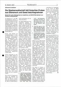 enthält u.a.: -Schriftverkehr, 4.12.2000-26.8.2002, u.a. Vorsitzender Schl.-Holst. Leukämiekommission an Energieminister Möller -Offener Brief H.W. Gabriel an Betriebsrat der GKSS vom 20.2.2001: Kernbrennstoff-Kügelchen in Geest und Marsch - ARGE-PhAM-Bericht (1 Seite) (Digitalisat vorhanden) -Pressemitteilungen, u.a. AKW Krümmel aus der Schusslinie - Strahlenunfall im Forschungsreaktor? : Brennstoff-Partikel mit hoher Alpha- und Beta-Strahlung gefunden / BIGLIE/Uwe Harden, [ohne Datum] (Digitalisat vorhanden) -Presseartikel -Vermerke, Kommentare und Kurzberichte ARGE PhAM -Stellungnahme zur Anfrage: Was ist PAC-Kernbrennstoff? / GRS -Zur Problematik von Kernbrennstoff-Kügelchen in Geest und Marsch / Heinz Werner Gabriel, 27.5.2001 (Entwurf) -EIR-Bericht 569 vom August 1985 [nuklearer Unfall Schweiz, 24.5.1983] -Messen am Problem vorbei : die Untersuchung des Niedersächsischen Landesamtes für Ökologie über heiße Teilchen und Transurane in der Elbmarsch. Bericht an die Expertenkommission Leukämie des Landes Schleswig-Holstein, AG Belastungsindikatoren / Dr. Helga Dieckmann, Prof. Dr. Inge Schmitz-Feuerhake, 27.2.2001 (5 Seiten) (Digitalisat vorhanden) -"Radioaktivität in Elbmarsch und Elbgeest", Kolloquium der SPD-Landtagsfraktion in Marschacht am 8.3.2001: Tagungsplan, Anwesenheitsliste -Bericht über die Sonderuntersuchung der Belastung des Bodens der Elbmarsch mit Alphastrahlern (Zusammenfassung) / Niedersächsisches Landesamt für Ökologie (NLÖ), 13.2.[2001] (Seite 1-2) [vergleiche P-UH1-2-30] -Bericht (SH/NS/ELB 2): Messungen der Radioaktivität in Elbmarsch und Elbgeest / Arbeitsgemeinschaft Physikalische Analytik und Meßtechnik (ARGE PhAM), 9.2.2001 -Auszug aus der Niederschrift über die 70. Sitzung des Ausschusses für Umweltfragen am 7.2.2001