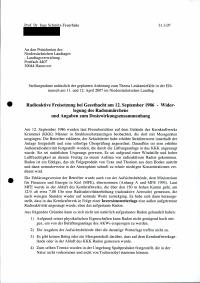 enthält u.a.: -Anhörung des Ausschusses für Soziales, Frauen, Familie und Gesundheit am 11./12. April 2007 zu "Leukämiefälle in der Elbmarsch müssen geklärt werden - Bürgerinnen und Bürger in der Elbmarsch nicht allein lassen" : Beantwortung der Fragen des Ausschusses zum Themenblock III "Kügelchen", 3.4.2004 [muss 2007 heißen?] (7 Seiten) -Bericht über die Sonderuntersuchung der Belastung des Bodens der Elbmarsch mit Alphastrahlern (Zusammenfassung) / Niedersächsisches Landesamt für Ökologie, 13.2.2001 (2 Seiten) -Bericht über die Sonderuntersuchung der Belastung des Bodens der Elbmarsch mit Alphastrahlern / Niedersächsisches Landesamt für Ökologie, [ohne Datum] (54 Seiten) -Nachtrag Landtagsanhörung: ergänzendes Material nach der Ausschuss-Sitzung vom 5.7.2006 -Wortprotokoll: Ausschuss-Sitzung Ausschuss für Soziales, Frauen, Familie und Gesundheit am 5.7.2006 (Entwurf) -Schriftverkehr BI -Projektskitze [sic!] Kolloquium Leukämie in der Elbmarsch / [Quelle?], [ohne Datum] (3 Seiten) -Presseerklärung Niedersächsisches Ministerium für Soziales, Frauen, Familie und Gesundheit, 10.12.2004 -Niedersächsischer Landtag: Wortprotokoll Plenarsitzung, 18.5.2006 (Auszug unkorrigiertes Manuskript, Beitrag Uwe Harden)