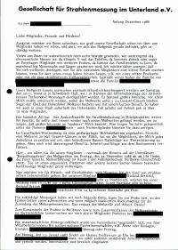Signatur: P-GSU-2-2-31 Titel/Autor: Rundbrief vom Dezember 1988 / Gesellschaft für Strahlenmessung im Unterland e.V. Laufzeit: 1988-12 Umfang: -10 Seiten, -1 Digitalisat