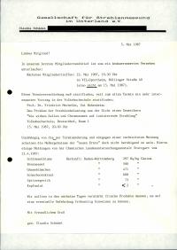 Signatur: P-GSU-2-2-47 Titel/Autor: Rundbrief vom 5. Mai 1987 / Gesellschaft für Strahlenmessung im Unterland e.V. Laufzeit: 1987-05-05 Umfang: -1 Seite, -1 Digitalisat