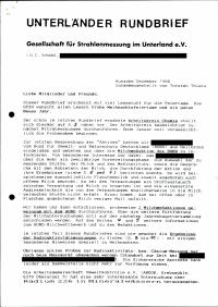 Signatur: P-GSU-2-2-53 Titel/Autor: Rundbrief vom Anfang Dezember 1986 / Gesellschaft für Strahlenmessung im Unterland e.V. Laufzeit: 1986-12 Umfang: -4 Seiten, -1 Digitalisat