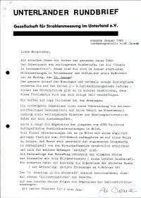 Signatur: P-GSU-2-2-30 Titel/Autor: Rundbrief vom Januar 1989 / Gesellschaft für Strahlenmessung im Unterland e.V. Laufzeit: 1989-01 Umfang: -10 Seiten, -1 Digitalisat