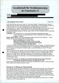 Signatur: P-GSU-2-2-9 Titel/Autor: Rundbrief vom 01.03.1994 / Gesellschaft für Strahlenmessung im Unterland e.V. Laufzeit: 1994-03-01 Umfang: -2 Seiten, -1 Digitalisat