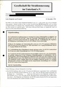 Signatur: P-GSU-2-2-7 Titel/Autor: Rundbrief vom 25.09.1994 / Gesellschaft für Strahlenmessung im Unterland e.V. Laufzeit: 1994-09-25 Umfang: -2 Seiten, -1 Digitalisat