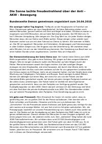 Enthält: Bericht zur Demonstration in Biblis am 24.04.2010: Die Sonne lachte freudestrahlend über der Anti–AKW –Bewegung : Bundesweite Demos gemeinsam organisiert zum 24.04.2010 / Dieter Kaufmann, 2010 (2 Seiten)