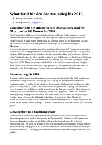 enthält: -Artikel: Schottland für den Atomausstieg bis 2016 / Dieter Kaufmann, in: Störfall Atomkraft (www.stoerfall-atomkraft.de), 12.8.2014 (3 Seiten) (Digitalisat vorhanden)