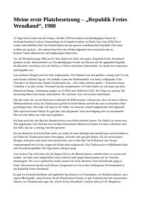 enthält: -Bericht: Republik Freies Wendland 1980 : Meine erste Platzbesetzung / Dieter Kaufmann, 28.4.2020 (2 Seiten) -Bericht: Vor 30 Jahren: Wendlandblockade / Dieter Kaufmann, 30.4.2014 (2 Seiten) -Notiz: Vor 40 Jahren – erster Atommülltransport nach Gorleben / Dieter Kaufmann, 8.10.2024 (1 Seite)