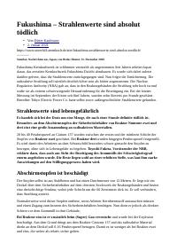 enthält: -Artikel: Fukushima – Strahlenwerte sind absolut tödlich / Dieter Kaufmann, in: Blog Störfall Atomkraft (www.stoerfall-atomkraft.de), 2021 (2 Seiten) (Digitalisat vorhanden)