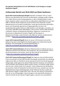 Enthält: -Chronik der Ereignisse in Plogoff/Bretagne, 1974-2022: Das geplante Atomkraftwerk mit vier AKW-Blöcken in der Bretagne an einigen Standorten Plogoff? : Umfassender Bericht vom 28.01.2022 / Dieter Kaufmann (6 Seiten) (Digitalisat vorhanden) -Artikel: Neues vom Fusionsreaktor ITER in Caderache/Südfrankreich / Dieter Kaufmann, in: Störfall Atomkraft (www.stoerfall-atomkraft.de), 9.7.2013 (2 Seiten) (Digitalisat vorhanden) -Artikel: Eine Anti-Atom-Demo-Reise in den Elsass/Frankreich, 2009 / Dieter Kaufmann, 10.5.2023 (3 Seiten) (Digitalisat vorhanden) -Artikel: Frankreich – Zeitenwende in Afrika. Alle Truppen ziehen aus West- und Zentralafrika ab – Orano Uranlizenz entzogen / Dieter Kaufmann, 7.7.2024 (33 Seiten) (Digitalisat vorhanden) -Chronik: Atomenergie in Frankreich nach der Wahl / Dieter Kaufmann, 11.7.2024 (6 Seiten) (Digitalisat vorhanden) -Einwendung: Déclaration sur la procédure « Aspects de sûreté génériques dans la prolongation de la durée de vie opérationnelle des réacteurs français de 1 300 MW au-delà de 40 ans » : Demande d'application de la Convention d'Espoo et de l'Accord d'Aarhus - Réalisation d'une étude d'impact sur l'environnement (EIE) et participation transfrontalière du public / Dieter Kaufmann, 28.9.2024 (13 Seiten) (Digitalisat vorhanden)