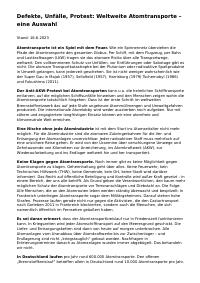 enthält: -Chronik: Defekte, Unfälle, Protest: Weltweite Atomtransporte – eine Auswahl / Dieter Kaufmann, 16.6.2023 (320 Seiten) [nur als Digitalisat vorhanden] -Chronik: Auszug : Frankfurt am Main für 1997 zu Castortransporte / Dieter Kaufmann, 12.10.2020 (2 Seiten) [Digitalisat vorhanden] -Chronik: 13. Castortransport von Frankreich nach Deutschland zum AKW Standort Philippsburg 2024 : Ein Rückblick / Dieter Kaufmann, 21.11.2024 (3 Seiten) [Digitalisat vorhanden]