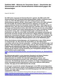 enthält: -Chronik: Zeitliste DDR – Wismut ein Tarnname (Uran) – Geschichte der Atomenergie und der Atomkraftwerke, Widerstand gegen die Atomanlagen (1939-2022) / Dieter Kaufmann, 07.08.2023 (137 Seiten) (Digitalisat vorhanden) -Kommentar: 75 Jahre nach Kriegsende - Bomben unter Oranienburg. Radiobeitrag Deutschlandfunk Kultur vom 10.3.2020, mit Vermerken von Dieter Kaufmann, 19.7.2024 bzw. 22.7.2024 (2 Seiten) (Digitalisat vorhanden)