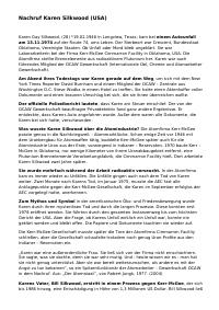 enthält: -Artikel: Nachruf Karen Silkwood (USA) / Dieter Kaufmann, 18.11.2023 (5 Seiten) (Digitalisat vorhanden), gekürzt auch erschienen in: Störfall Atomkraft (www.stoerfall-atomkraft.de) -Chronik: Zeitliste USA - US Bundesstaat Kalifornien : Atomkraftwerke und Anti-AKW-Bewegung / Dieter Kaufmann, 19.12.2022 (37 Seiten) -Artikel: Atommülllagerung in den USA / Dieter Kaufmann (9 Seiten), veröffentlicht in: https://anti-atom-ka.de/atommuelllagerung-in-den-usa/, 8.9.2019 -Chronik: Zeitliste USA/New Hampshire hier AKW Standort Seabrook / Dieter Kaufmann, 31.12.2022 (5 Seiten) (Digitalisat vorhanden)