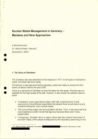 Signatur: P-HH1-5-3-7-1 Titel/Autor: Nuclear Waste Management in Germany : Mistakes and New Approaches. A Brief Summary / Dr. Helmut Hirsch, 2003 Laufzeit: 2003-12-02 Umfang: 1 Datei (PDF)