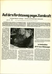Enthält: -Klage gegen den Freistaat Bayern wegen der Genehmigung der Kompaktlagerung abgebrannter Brennelemente im Kernkraftwerk Gundremmingen : Kurzfassung der ca. 70-seitigen Begründung der Klage (Quelle?, ohne Datum) -Presse zum Thema "Verseuchte Reaktorteile" 1983-1984 -Manuskripte und Notizen zum AKW Gundremmingen II allgemein, 1983-1986 -Presse AKW Gundremmingen 1983-1987 -30 Jahre Überwachung der Umweltradioaktivität in der Bundesrepublik Deutschland / Bundesminister des Innern, [1983], Seite 98-235 -Umweltinstitut München e.V.: Messprotokolle Radioaktivitätswerte, 13.12.1986-30.1.1987 -Alarmplan für 1. Sanitätszug Wertingen, Stand 21.2.1984 -Klage Clementine Rothenstein gegen KRB II: Niederschrift der Klägerin vom 5.9.1984 und dazugehörende Presse 1981-1983 (8 Seiten) (z.T. geschwärztes Digitalisat vorhanden) -Anschreiben des Bayerischen Staatsministeriums für Landesentwicklung und Umweltfragen an die Schutzgemeinschaft vom 1.6.1987: Kernkraftwerk Gundremmingen II (KRB II), Block C; Besonderes Vorkommnis am 6.5.1987 -Presse zu Störfällen 1985 und 1987 -Schriftwechsel Schutzgemeinschaft Donauried e.V. zu Störfällen im Januar 1985 (6 Seiten) (Geschwärztes Digitalisat vorhanden) -Schriftwechsel Schutzgemeinschaft Donauried e.V. und anderer sowie Presse zu Störfall im März 1986 (10 Seiten) (Geschwärztes Digitalisat vorhanden) -weitere Schriftwechsel und Presseartikel -Stellungnahme zum Störfall im Atomkraftwerk Gundremmingen (Block C) am 12.03.1986 / Öko-Institut Freiburg, 10.4.1986 (7 Seiten) (Digitalisat siehe P-RK1-2-2-12)