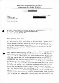 Enthält: ausgewählte digitalisierte Dokumente des Aktenordners: - Polizeiprobleme in Gundremmingen: -Anschreiben Bayerisches Innenministerium an Raimund Kamm vom 3.2.1998: Polizeiliche Videoaufzeichnung anläßlich einer Demonstration am 23.2.1997 beim Atomkraftwerk Gundremmingen; Ihre Eingabe vom 26.2.1997, Presseerklärung Raimung Kamm vom 26.2.1997: Friedliche DemonstrantInnen dürfen von der Polizei nicht gefilmt werden : Raimund Kamm weist Innenminister Beckstein auf Grundgesetz und Datenschutz hin - Rissprobleme: -Anschreiben Raimund Kamm an Süddeutsche Zeitung vom 25.1.1999: Risse in Atomreaktoren, diverse Zeitungsartikel (z.T. nur als Thermokopie, schlecht lesbar), Pressemitteilung Verein Energiewende atomkraftfreies Schwaben e.V. vom 16.11.1998: Was wird im AKW-Gundremmingen verschwiegen? -Bericht des Bayerischen Staatsministeriums für Landesentwicklung und Umweltfragen zum Antrag des Abgeordneten Hofmann, Kaul, Göppel und Fraktion CSU, Drs. Nr. 14/74 betreffend Vorkommnis im Kernkraftwerk Gundremmingen am 6. Oktober 1998 vor dem Ausschuß für Landesentwicklung und Umweltfragen des Bayerischen Landtags am 21.01.99 (17 Seiten) (nur zur Ansicht im Archiv) -Bayerischer Landtag, Drs. 13/8078 vom 9.5.1997/13.5.1997: Schriftliche Anfrage des Abgeordneten Kamm Bündnis 90/DIE GRÜNEN vom 4.4.1997 (Rißbefunde bei den Revisionsarbeiten während der Jahre 1995,1996 und 1997 in den Blöcken B und C des Atomkraftwerkes Gundremmingen) -Zeitungsartikel zum Thema "Risse in Atomkraftwerk", 1993-1997 (nur zur Ansicht im Archiv) -Pressemitteilung Raimund Kamm (MdL) vom 22.7.1995: Erstmals auch Risse im AKW Gundremmingen gefunden : GRÜNE: Sicherheitsillusion zerbricht -Protokoll: Informationsgespräch im Kernkraftwerk Gundremmingen, 11.3.1993 (nur zur Ansicht im Archiv) -Bayerischer Landtag, Plenarprotokoll 12/82 vom 10.2.1993: Dringlichkeitsantrag Überprüfung betriebsbedingter Risse von Leitungssystemen in Kernkraftwerken Bayerns (Drs. 12/10030) (3 Seiten) - Atommülltransporte: -7 Zeitungsartikel zum Thema "Kontaminierter Castor-Behälter in Gundremmingen", 1998 sowie Flyer RWE Energie: Durch Offenheit Vertrauen schaffen : RWE Energie informiert über Brennelemente-Transporte (nur zur Ansicht im Archiv) -Pressemitteilung Raimund Kamm (MdL) vom 12.6.1997: Gundremmingen wird als eines der ersten deutschen AKWs aus der die Erde verseuchenden Wiederaufarbeitung (WAA) aussteigen (2 Seiten)