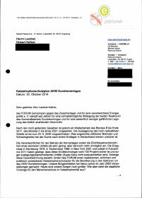 Enthält: ausgewählte digitalisierte Dokumente des Aktenordners zu den Themen Katastrophenschutz und Sicherheit: -Anschreiben Forum e.V. an Landrat Hafner vom 30.10.2014: Katastrophenschutzplan AKW Gundremmingen, inklusive Fragenkatalog und Positionspapier (5 Seiten) -Planungsgebiete für den Notfallschutz in der Umgebung von Kernkraftwerken : Empfehlung der Strahlenschutzkommission / SSK, 13./14.2.2014 (24 Seiten) (nur zur Ansicht im Archiv) -Broschüre: Ratgeber für die Bevölkerung in der Umgebung des Kernkraftwerks Gundremmingen : Information der Öffentlichkeit nach § 53 Abs. 5 der Strahlenschutzverordnung / Kernkraftwerk Gundremmingen GmbH (KGG), April 2003 (12 Seiten) -Broschüre: Ihr kleiner GAU-Ratgeber / Greenpeace, [vor 2019] (18 Seiten) -Zeitungsartikel Juni/Juli 2004: Kunstnebel soll Reaktor vor Terror schützen, Bayern hält Jodtabletten bereit (2 Seiten) (nur zur Ansicht im Archiv) -Anschreiben Energiewende atomkraftfreies Schwaben e.V. (EWaS)/Raimund Kamm an Bundesbeauftragten für die Unterlagen des Staatssicherheitsdienstes vom 24.8.2003: Terroranschlags-Zielobjekt AKW Gundremmingen, inkl. Antwortschreiben vom 4.9.2003 und Download Zeitungsartikel DIE WELT vom 7.4.1999 (4 Seiten) -Zeitungsartikel Günzburger Zeitung (GZ) vom 24.5.2003: Evakuierungsplan sorgt für Missverständnisse (1 Seite) (nur zur Ansicht im Archiv) -Flugschrift: Wir fordern Sicherheit für Sektor 11! : Kritik am neuen "Ratgeber" für die Bevölkerung in der Umgebung des Kernkraftwerkes Gundremmingen / Forum e.V. [ohne Datum] (4 Seiten) -Zeitungsartikel Augsburger Allgemeine (AA) vom 19.9.2001: Kernkraftwerke würden Anschlägen nicht standhalten (1 Seite) (nur zur Ansicht im Archiv) -Zeitungsartikel November 1999 bis Mai 2000: Nukleares Planspiel unter Kronleuchtern, Jodtabletten (4 Seiten) (nur zur Ansicht im Archiv) -Pressemitteilung Raimund Kamm vom 25.7.1996: Was passiert, wenn in Gundremmingen doch was passiert? : Antwort der Staatsregierung zeigt, kaum Vorsorge für Evakuierung und Schadensersatz (1 Seite), inkl. Drucksache 13/5090 Bayerischer Landtag: Schriftliche Anfrage des Abgeordneten Kamm (Bündnis 90/DIE GRÜNEN) vom 28.4.1996: Was passiert, wenn in Gundremmingen... (2 Seiten) -Zeitungsartikel Augsburger Allgemeine (AA) vom 18./19.11.1992: Ein Unglück in 20000 Jahren : Neue Studie über die Wahrscheinlichkeit einer Reaktorkatastrophe in Gundremmingen , inkl. Leserzuschriften vom 28.11.1992 (2 Seiten) -Der "Sicherheitsbehälter" von Kernkraftwerken : Die wichtigsten nuklearen Unfallmöglichkeiten und ihre möglichen katastrophalen Folgen / Richard E. Webb, 1992, in: [...]rger [Um]weltzeitung (5 Seiten) und Nachtrag in Ausgabe 3/1992 (1 Seite) -Kartell des Schweigens fördert landesgefährliche Illusionen : Memorandum Atom-Terrorgefahr / Raimund Kamm, 14.3.2004: Sorgenmachende Erkenntnisse nach dem 11. September 2001 - Brisante Ziele haben extreme Verstärkungswirkung - Kehrseite unserer Hochentwicklung - ein Millionstel Gramm Plutonium kann Lungenkrebs auslösen - Chronik: Sind unsere Atomanlagen ausreichend geschützt? Könnte der Katastrophenschutz uns im Falle des Falles helfen? (17 Seiten) -diverse Zeitungsartikel September bis Oktober 2001: Sicherheit, Terrorgefahr, Flugzeugabsturz (14 Seiten) (im Original Seite 14 letzte Zeile des Artikels abgeschnitten sowie 9. Seite rechts abgeschnitten) (nur zur Ansicht im Archiv) -Terrorangriffe auf deutsche Atomkraftwerke : Bewertung der Gegenmaßnahmen / Helmut Hirsch, Oda Becker, Wolfgang Neumann, 2004 (Alt-Signatur INT: 7048)
