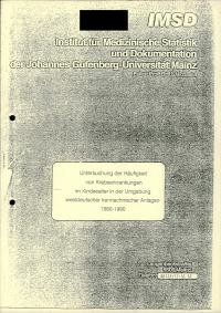 enthält: Untersuchungen der Häufigkeit von Krebserkrankungen im Kindesalter in der Umgebung westdeutscher kerntechnischer Anlagen 1980-1990 / B. Keller, G. Haaf, P. Kaatsch, J. Michaelis, Institut für Medizinische Statistik und Dokumentation der Johannes-Gutenberg-Universität Mainz (IMSD), Februar 1992 (157 Seiten) [vergleiche P-UH1-2-16] (Digitalisat vorhanden)