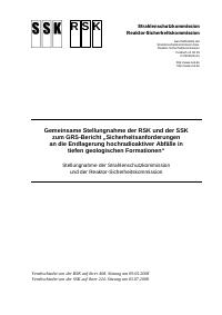 Titel/Autor: Gemeinsame Stellungnahme der RSK und der SSK betreffend BMU-Fragen zur Fortschreibung der Endlager-Sicherheitskriterien, 2002