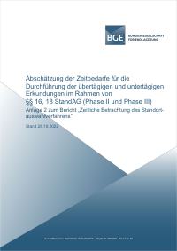 Signatur: P-US1-5-10-4-131-3 Titel/Autor: Abschätzungen für die Zeitbedarfe für die übertägigen und untertägigen Erkundungen im Rahmen von §§ 16,18 StandAG (Phase II und Phase III) / Bundesgesellschaft für Endlagerung mbH (BGE), 2022 Laufzeit: 2022-10-28 Umfang: 1 Datei (PDF), 49 Seiten enthält: Anlage 2 zum Bericht "Zeitliche Betrachtung des Standortauswahlverfahrens" / Bundesgesellschaft für Endlagerung mbH (BGE), 28.10.2022