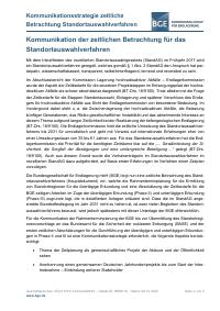 Signatur: P-US1-5-10-4-131-4 Titel/Autor: Kommunikation der zeitlichen Betrachtung für das Standortauswahlverfahren / Bundesgesellschaft für Endlagerung mbH (BGE), 2022 Laufzeit: 2022-10-28 Umfang: 1 Datei (PDF), 5 Seiten enthält: Anlage 3 zum Bericht "Zeitliche Betrachtung des Standortauswahlverfahrens" / Bundesgesellschaft für Endlagerung mbH (BGE), 28.10.2022