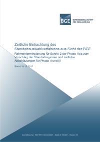 Signatur: P-US1-5-10-4-131-5 Titel/Autor: Zeitliche Betrachtung des Standortauswahlverfahrens aus Sicht der BGE, 2022 Laufzeit: 2022-12-16 Umfang: 1 Datei (PDF), 121 Seiten enthält: Rahmenterminplanung für Schritt 2 der Phase I bis zum Vorschlag der Standortregionen und zeitliche Abschätzungen für Phase II und III