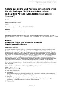 Titel/Autor: Gesetz zur Suche und Auswahl eines Standortes für ein Endlager für Wärme entwickelnde radioaktive Abfälle (Standortauswahlgesetz - StandAG) / Bundesministerium der Justiz und für Verbraucherschutz (BMJ), 2023