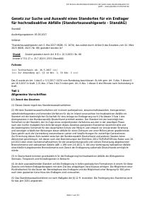 enthält: Standortauswahlgesetz vom 5. Mai 2017, das zuletzt durch Artikel 8 des Gesetzes vom 22. März 2023 geändert worden ist
