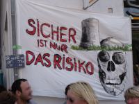 Signatur: S-1-34-10 Titel/Autor: Demonstration Günzburg, 25.04.2011, AKW Gundremmingen Laufzeit: 2011-04-25 Umfang: 1 digitales Foto, farbig, Transparent "Sicher ist nur das Risiko"