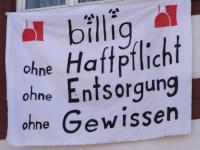 Signatur: S-1-34-9 Titel/Autor: Demonstration Günzburg, 25.04.2011, AKW Gundremmingen Laufzeit: 2011-04-25 Umfang: 1 digitales Foto, farbig, Transparent "billig ohne Haftpflicht ohne Entsorgung ohne Gewissen"