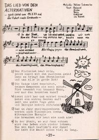 enthält: -Montags gegen die Atommafia (9 Strophen mit Refrain), Melodie: Laßt uns froh und munter sein -Bye bye Atomkonzerne (4 Strophen mit Refrain), Melodie: Bye, bye, Love