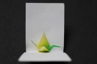 Signatur: S-8-12 Titel/Autor: Klappkarte: gefalteter Kranich Laufzeit: ca. 2011 Umfang: 3,5 x 4,5 cm, Papier