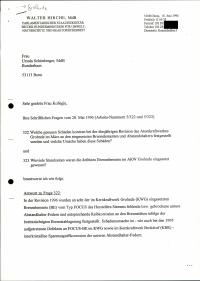 Enthält: - Diverses -Zeitungsartikel HAZ (Hannoversche Allgemeine Zeitung) vom 29.1.1997: “Zwischenlager am Kraftwerk sind Unsinn” / Margit Kautenburger (1 Seite) (Digitalisat vorhanden - nur zur Ansicht im Archiv) -persönliche Notizen (Mitschrift) vom 13.10.1995 (Betriebsbesichtigung AKW Grohnde): Informationen zum AKW-Betrieb (6 DIN A5-Seiten) - Störfälle -Anschreiben Walter Hirche (MdB) an Ursula Schönberger (MdB) vom 10.6.1996: Antwort auf schriftliche Fragen vom 28.5.1996 (ArbeitsNummern 5/322 und 5/323): Schäden im AKW Grohnde und Standzeiten defekter Brennelemente (2 Seiten) (Digitalisat vorhanden) -Anschreiben Dr. Angela Merkel an Hans Peter Schmitz, Vorsitzender des Ausschusses für Umwelt, Naturschutz und Reaktorsicherheit des Deutschen Bundestages vom 8.3.1996: meldepflichtiges Ereignis AKW Grohnde am 25.1.1996 (2 Seiten) -Fax von Ulrike Fink an Ursula Schönberger vom 10.10.1995: Organisatorisches zur Betriebsbesichtigung des AKW Grohnde am 13.10.1995 (1 Seite) -Zeitungsartikel Braunschweiger Zeitung (BZ) vom 18.9.1985: “Radioaktivität nicht erhöht” (1 Seite) (Digitalisat vorhanden) -Flugschrift: Der Grünspecht : Spitze Zeitung der Grünen Hameln Pyrmont, April 1985 (4 Seiten DIN A3) [ein Artikel ausgeschnitten] (Digitalisat vorhanden) -Niedersächsischer Landtag, Drs. 10/4169: Antwort vom 28.3.1985 auf die Kleine Anfrage (Drs. 10/3945) zum Störfall im Atomkraftwerk Grohnde am 20. Februar 1985 (2 Seiten) (Digitalisat vorhanden) - Evakuierungsplan -Broschüre: Notfall – eine Offenbarung der Ohnmacht : der “Katastrophenschutz” in der Umgebung des Atomkraftwerkes Grohnde / DIE GRÜNEN, Kreisverband Hameln-Pyrmont [vor 1989] (16 Seiten) (Digitalisat vorhanden) -Zeitungsartikel März bis September 1984: Evakuierungsplan, Katastrophenschutzplan (5 Seiten) (Digitalisat vorhanden) - Betreiber-Material -Werbebroschüre: Gemeinschaftskernkraftwerk Grohnde (KWG), ca. 1991 (16 Seiten) -Flugblatt: Zahlenspiegel / Gemeinschaftskraftwerk Weser GmbH (GKW), 1990 (6 Seiten, als Leporello, <DIN A6) -Werbeflugschrift: Jahresübersicht 1991 / Gemeinschaftskernkraftwerk Grohnde (KWG), 1991 (8 Seiten, als Leporello, DIN A4) -Werbeflugschrift: Die Kraft der Region. Energie im öffentlichen Interesse / Elektrizitätswerk Wesertal GmbH, [ohne Datum] (8 Seiten, als Leporello, DIN A4) -Werbeflugschrift: Jahresübersicht 1994 / Gemeinschaftskernkraftwerk Grohnde (KWG), 1994 (8 Seiten, als Leporello, DIN A4) -Werbeflugschrift: Sicherheitshülle Grohnde / NOELL, [ohne Datum] (4 Seiten)