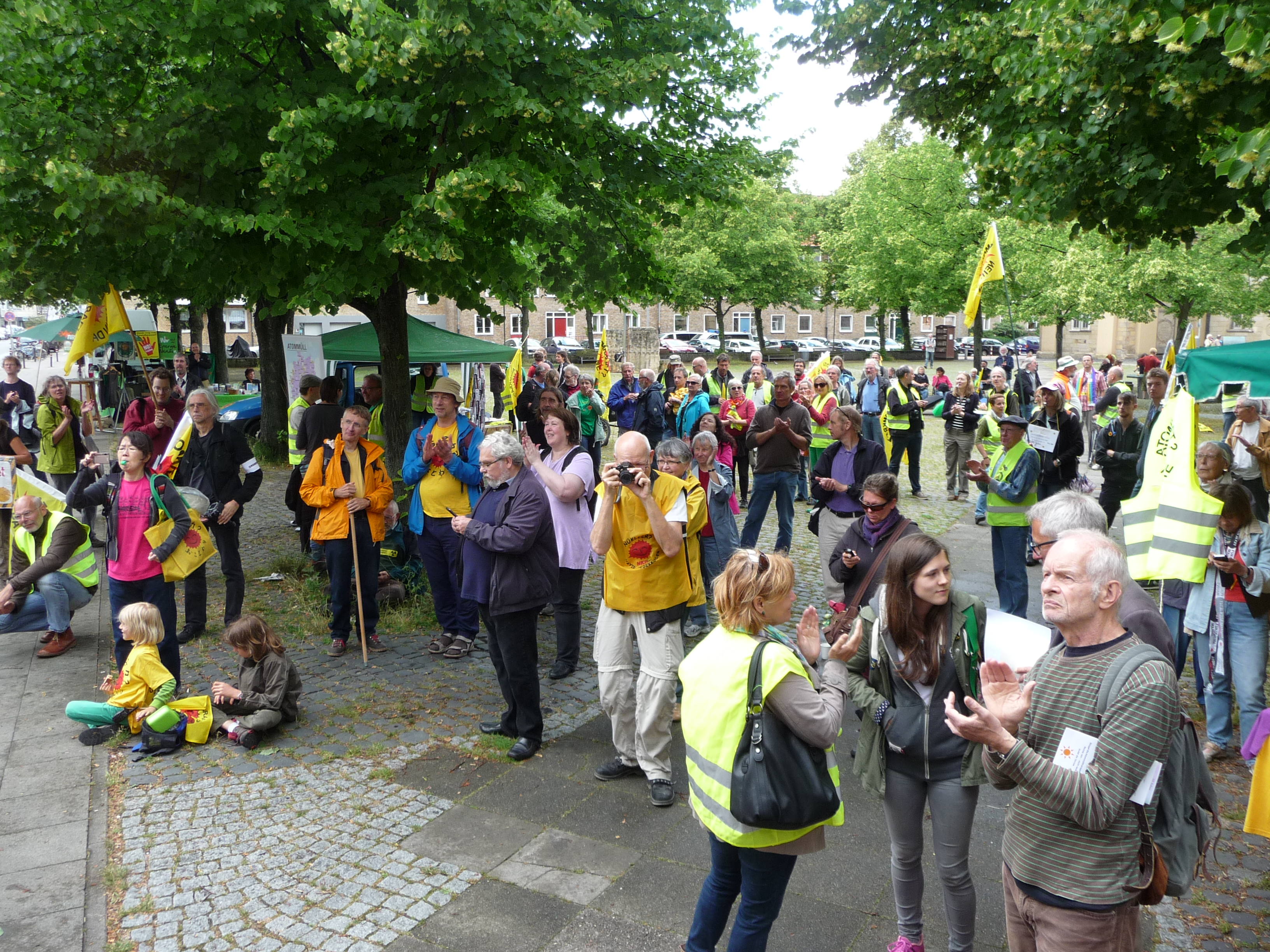 Signatur: S-1-32-4 Titel/Autor: DemonstrantInnen Opernplatz, AKW Grohnde Laufzeit: 2014-06-14 Umfang: 1 digitales Foto, farbig,