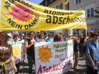 Mit selbstgestalteten Fronttransparent "Fukushima mahnt! Zeigt Verstand - Atomausstieg jetzt!"
