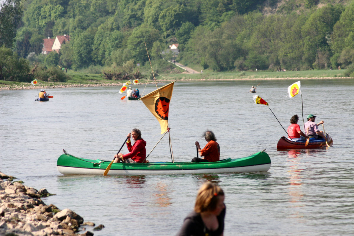 Signatur: S-1-36-4 Titel/Autor: Demonstrant:innen in Booten auf der Weser, 25.04.2011, AKW Grohnde Laufzeit: 2011-04-25 Umfang: 1 digitales Foto, farbig,