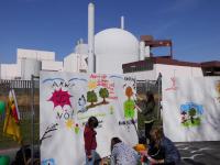 Signatur: S-1-35-2 Titel/Autor: Demonstration, Mai 2013, AKW Brokdorf Laufzeit: 2013-05 Umfang: 1 digitales Foto, farbig, Transparente-Malen vor dem AKW Brokdorf
