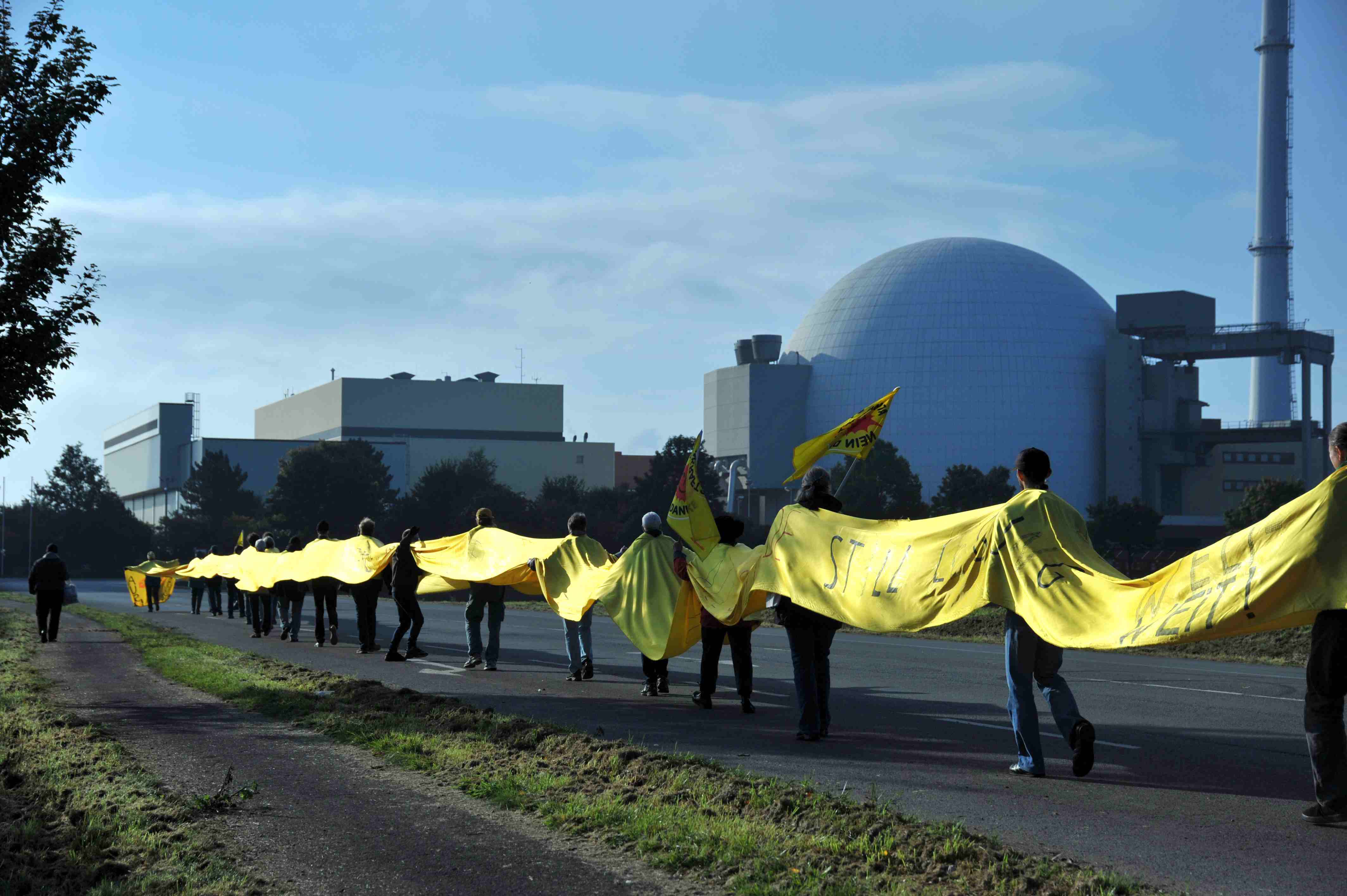 Signatur: S-1-30-4 Titel/Autor: Demonstration, AKW Grohnde Laufzeit: 2011-10-02 — 2011-10-03 Umfang: 1 Foto, digital, farbig,