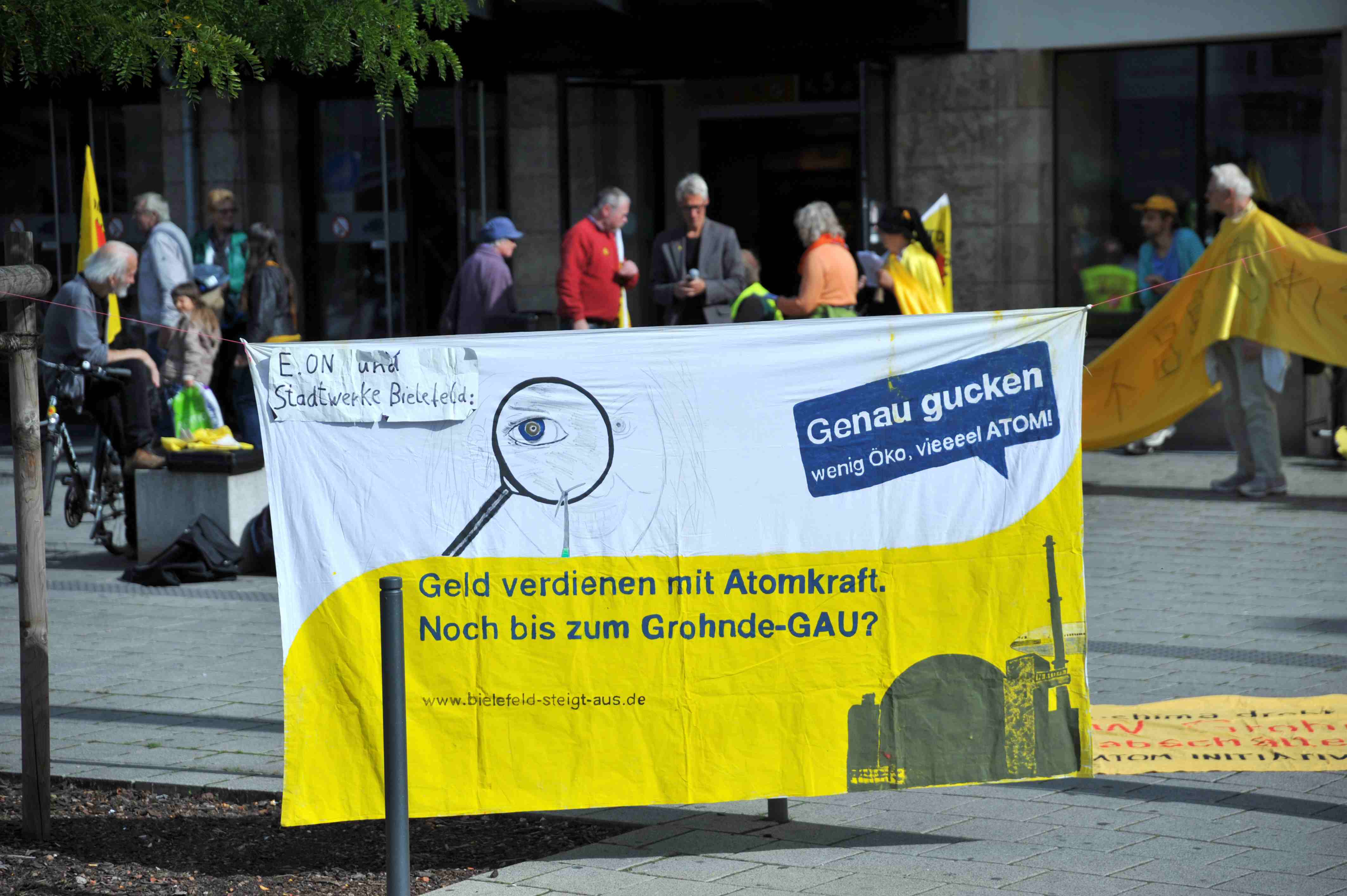 Signatur: S-1-32-4 Titel/Autor: DemonstrantInnen Opernplatz, AKW Grohnde Laufzeit: 2014-06-14 Umfang: 1 digitales Foto, farbig,