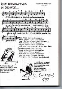 Enthält: Lieder zu folgenden Standorten/Themen: -Esenshamm -Lichtenhorst -Würgassen -Brokdorf (Digitalisat vorhanden) -Malville -Gundremmingen -Borken -Marckolsheim -Wyhl -Grohnde -Internationales -Repression/Polizei -Verschiedenes mit Quellenangaben, Zeichnungen und Fotos