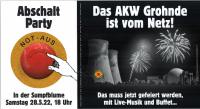 Signatur: S-6-3 Titel/Autor: Abschalt Party : Das AKW Grohnde ist vom Netz!, 2022 Laufzeit: 2022-05-28 Umfang: 1 Postkarte, 23,5 cm x 12,5 cm, Vorder- und Rückseite bedruckt