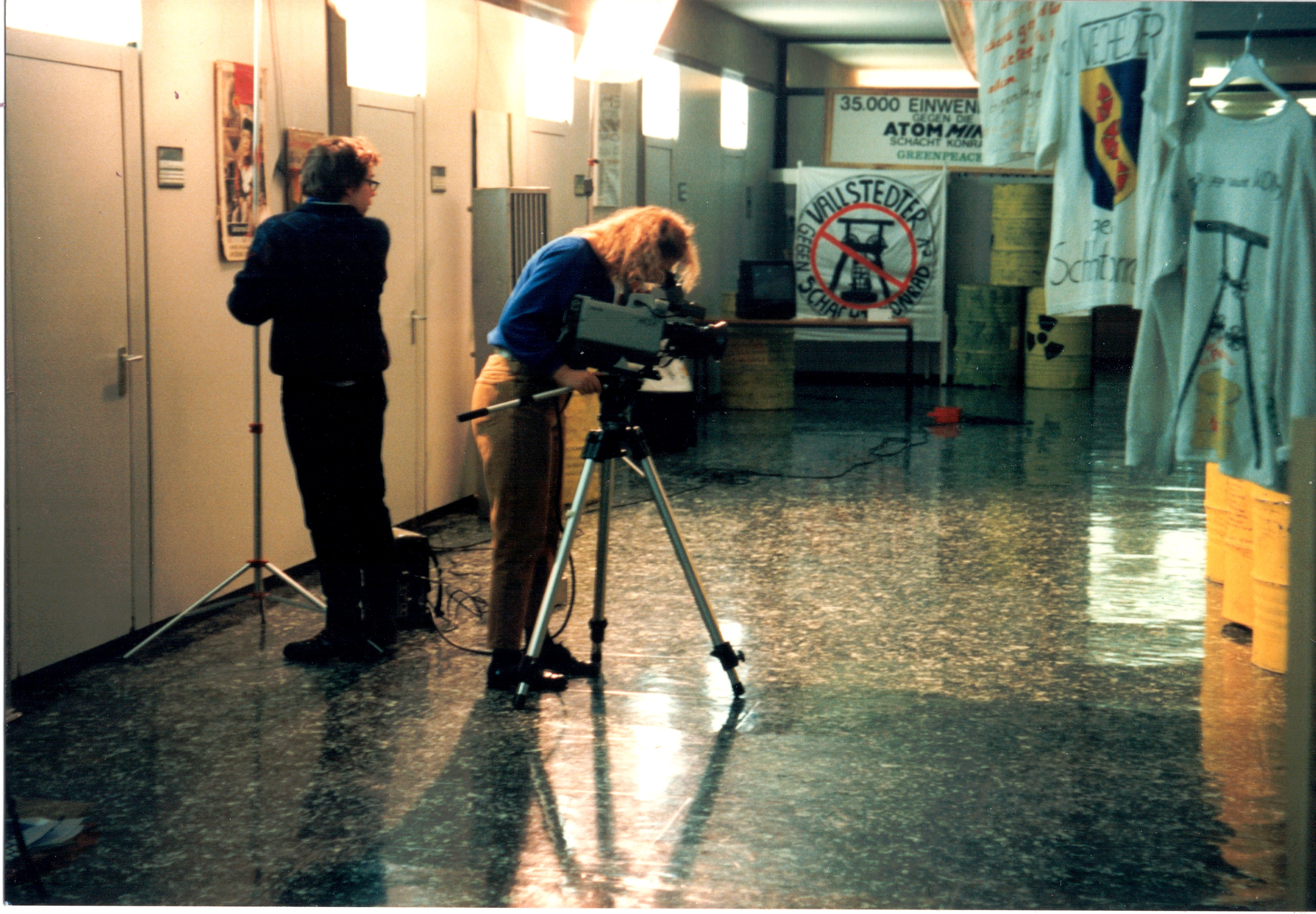 Titel/Autor: Dreharbeiten zum Film über die Ausstellung "Kreative Einwendungen" : Kamera und zwei Personen im Rathaus in Salzgitter Lebenstedt, 4.2.1992 Laufzeit: 1992-02-04 Umfang: Papierabzug, 9x13 cm, farbig Signatur: S-1-12-2
