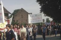 Titel/Autor: Holzturm-Demonstration gegen Schacht Konrad : Demonstrationszug mit Transparenten, 27.6.1981 Laufzeit: 1981-06-27 Umfang: 1 Foto, digital Signatur: S-1-24-1-14