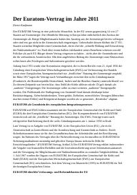 Enthält: -Artikel: Der Euratom-Vertrag im Jahre 2011 / Dieter Kaufmann, in: Zeitschrift für marxistische Erneuerung, Nr. 88, Dezember 2011 (9 Seiten) [Digitalisat vorhanden] -Artikel: 50 Jahre EURATOM - 50 Jahre Klimaschutz? / Dieter Kaufmann, in: SOLARZEITALTER 1, 2007, Seite 30 - 38 [Digitalisat vorhanden] -Artikel: Atomkraftwerke, der Wasserverbrauch und der Klimawandel in Europa / Dieter Kaufmann, 5.1.2023 (5 Seiten) [Digitalisat vorhanden] -Artikel: Geschichte der Konsensgespräche / anti-atom-aktuell und Dieter Kaufmann (in: anti-atom aktuell (aaa), Nr. 106, 1999 und Einschub von Dieter Kaufmann), 8.3.2023 [Digitalisat vorhanden] -Artikel: Der Atomstrom der aus Frankreich nach Deutschland fließt – eine Mogelpackung / Dieter Kaufmann, 22.09.2023 (4 Seiten) [Digitalisat vorhanden], veröffentlicht auf www.ag-schacht-konrad.de/news/newsuebersicht/der-atomstrom-der-aus-frankreich-nach-deutschland-fliesst-eine-mogelpackung -Artikel: Europäische Investitionsbank zwischen Euratom und EU im Dauerstreitthema Atomenergie / Dieter Kaufmann, 24.12.2023 (11 Seiten) [Digitalisat vorhanden] -Artikel: Die Mär von billiger Atomenergie / Dieter Kaufmann, 31.01.2024 (2 Seiten) [Digitalisat vorhanden], veröffentlicht auf https://www.ag-schacht-konrad.de/news/newsuebersicht/die-maer-von-billiger-atomenergie -Presseschau: Neue Greenpeace Studie zu Atomenergie / Dieter Kaufmann, 21.6.2024 (1 Seite): kommentierte Link-Sammlung [Digitalisat vorhanden] -Artikel: Atomkraftwerke in Europa 2024 / Dieter Kaufmann, 1.7.2024 (16 Seiten) [Digitalisat vorhanden] -Artikel: Small-Modular-Reactor / Dieter Kaufmann, 20.4.2025 (2 Seiten) [Digitalisat vorhanden]