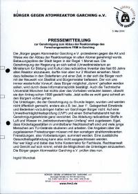 Titel/Autor: BGAG : Gesammeltes: Vereinsunterlagen, Bündnis gegen Atomreaktor Garching, div. Veröffentlichungen anderer zum FRM II, Presse, Drucksachen Landtag/Europa, 1980-2000