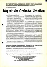 Enthält: -Flugblatt: Info 7, 15.6.1978: Protokoll des Aktionswochenendes vom 9.-11.6.1978 (4 Seiten, DIN A5) (Digitalisat vorhanden) -Material-Info (Info 9) des Aktionswochenendes der BI's gegen Atomanlagen vom 9.6.-11.6.78 in Hannover, mit Pressespiegel und Wortprotokollen (72 Seiten, z.T. als DIN A5) (Digitalisat vorhanden) - Vorbereitung, Mobilisierung, Presse: -Protokoll: Info-Gruppe der Hannoverschen Bürgerinitiativen gegen Atomanlagen, [zwischen 22.4.1978 und 7.5. 1978] (3 Seiten): Zusammenfassung des Treffens am 22.4.1977 [sic!] in Hannover, inkl. Teilnehmerliste -Protokoll: Konferenz der BI's gegen Atomanlagen vom 7.5.[19]78 in Hannover (2 Seiten) (Digitalisat vorhanden) -verschiedene Gegenvorschläge für ein Arbeitstreffen Ende Juni/Anfang Juli in Hannover bzw. für eine Großkundgebung / unklare Quelle, ohne Datum (1 Seite) (Digitalisat vorhanden) -persönliche Notizen zum Treffen am 7.5.1978 (5 Seiten, DIN A5) -Informationsschreiben: Info der LK Nr.1, 13.5.1978: Bericht von der zentralen Konferenz zu den "Grohnde Prozessen" in Hannover am 7.5.[19]78 (8 Seiten, DIN A5) (Digitalisat vorhanden) -Flugblatt: Erklärung zu den Grohnde-Prozessen und Aufruf zum Protest am 10.6.78 in Hannover / Konferenz der Bürgerinitiativen, [ca. Mai 1978] (1 Seite) (Digitalisat vorhanden) -Stellungnahme zum Treffen von Bürgerinitiativen am 7.5. in Hannover / Info-Gruppe der hannoverschen Bürgerinitiativen gegen Atomanlagen, 14.5.1978 (4 Seiten) (Digitalisat vorhanden) -Protokoll des Organisationstreffens für Demonstrati[o]n und Arbeitstreffen in Hannover (09.-11.06.78) (6 Seiten, DIN A5) -Protokoll der Bürgerinitiativenkonferenz am 20. Mai in Hannover zur Organisation einer Demonstration und eines Arbeitstreffens in der Zeit vom 9. Juni bis 11. Juni [1978] in Hannover, 21.5.1978 (1 Seite) -Flugblatt: Info Nr. 5, 28.5.1978: Protokoll der Organisationsberatung am 27. Mai in Hannover (4 Seiten, DIN A5) -Flugblatt: Info Nr. 6, 4.6.1978: Vorbereitungsinfo vor den Aktionstagen [9.-11.6.1978] (4 Seiten, DIN A5) (Digitalisat siehe Pressematerial zum Aktionswochenende) -Organisationsausschuß zum Aktionswochenende der Bürgerinitiativen gegen Atomanlagen in Hannover: 2 verschiedene Rundschreiben vom 31.5.1978: Werbung für Aktionswochenende am 9.-11.6.1978 (2 Seiten) -Presseerklärung des Organisationsausschusses zum Aktionswochenende der Bürgerinitiativen gegen Atomanlagen in Hannover vom 31.5.1978: Grohnde-Prozesse/Stand der Anti-AKW-Bewegung (1 Seite) (Digitalisat vorhanden) -Einladung zur Pressekonferenz der Bürgerinitiativen gegen Atomanlagen am 8.6.1978 vom 31.5.1978 (1 Seite) -Pressematerial für das Aktionswochenende 9.-11.6.1978 in Hannover (inkl. Info Nr. 6, Vortragszusammenfassungen von Jens Scheer, Auszüge aus "Rote Fahne", Kurzstellungnahmen, u.a. des Ermittlungsausschusses der BBA und der KPD, Presseartikel) (14 Seiten) (Digitalisat vorhanden) -Plakat zum Aktionswochenende der Bürgerinitiativen gegen Atomanlagen vom 9.-11.6.1978, DIN A3 (siehe unter S-2-282) (Digitalisat vorhanden) -Plakat: Diskussionsveranstaltung "Atomprogramm und Demokratie", 9.6.1978 (siehe unter S-2-283) (Digitalisat vorhanden) -Plakat zur Demonstration am 10.6.1978, Titel: "Sie würden uns gern im Knast begraben, denn wir kämpfen gegen Atomanlagen", DIN A2 (Duplikat, siehe auch unter S-2-41) (Digitalisat vorhanden) -Bericht St. Georg: Hannover, 9. Juni 78 - Demonstration und Arbeitstreffen "Gegen die Kriminalisierung der AKW-Gegner" (4 Seiten) (Digitalisat vorhanden) -Zeitungsartikel zum Aktionswochenende, 9.-24.6.1978 (4 Seiten) (Digitalisat vorhanden) -Flugblatt: Weg mit den Grohnde-Urteilen! / Kommunistische Partei Deutschlands: Aufruf zum Aktionswochenende der BI’s gegen Atomanlagen in Hannover, Organisation der Demonstrationsteilnahme am 10.6.1978 ab Hamburg (2 Seiten) (Digitalisat vorhanden) -Flugblatt: Weg mit den Grohnde-Urteilen / Bürgerinitiativen gegen Atomanlagen: Aufruf zum Aktionswochenende der BI’s gegen Atomanlagen in Hannover (2 Seiten), 5 Versionen (mit unterschiedlich vielen Unterstützergruppen) (1 Digitalisat vorhanden)