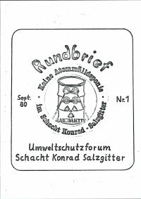 Titel/Autor: Rundbrief Umweltschutzforum Schacht Konrad - Salzgitter e.V. : Ausgabe Nr. 1, September 1980